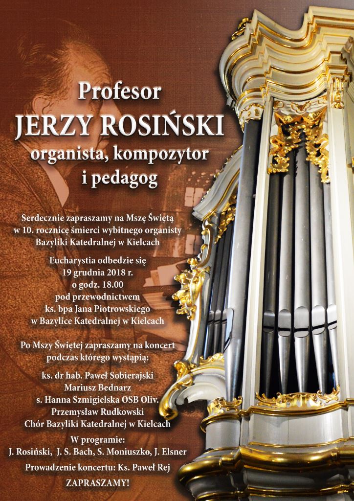 W środę 19 grudnia, w przeddzień 10. rocznicy śmierci prof. Jerzego Rosińskiego w Bazylice Katedralnej w Kielcach odbyła się Msza Święta w intencji tego wielkiego organisty, kompozytora i pedagoga. Eucharystii przewodniczył i homilię wygłosił ks. bp Jan Piotrowski - Ordynariusz Diecezji Kieleckiej. Po Mszy Świętej odbył się koncert upamiętniający postać tego wielkiego muzyka.