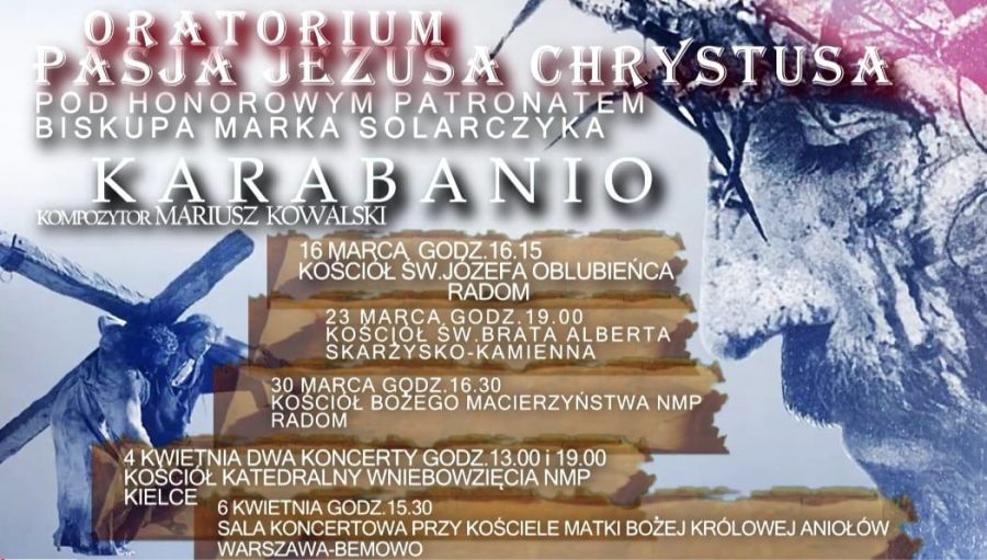 W najbliższy piątek w Bazylice Katedralnej odbędzie się Oratorium "Pasja Jezusa Chrystusa" w wykonaniu grupy artystycznej "Karabanio". Oratorium zostało skomponowane przez multiinstrumentalistę Mariusza Kowalskiego na podstawie wizji bł. Katarzyny Emmerich.