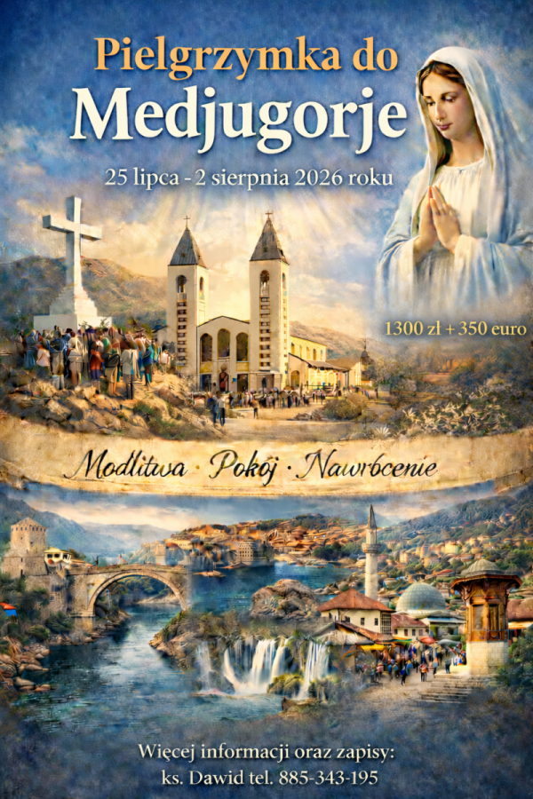 Zapraszamy parafian do udziału w wyjątkowej pielgrzymce łączącej modlitwę, formację duchową i poznawanie pięknych miejsc Europy Południowej. Centralnym punktem pielgrzymki będzie pobyt w Medjugorje, z codziennym udziałem w międzynarodowym programie modlitewnym.