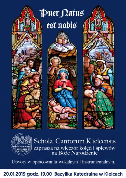 W najblizszą niedzielę, 20 stycznia, po Mszy Świętej o godz. 18.00 Schola Cantorum Kielcensis zaprasza na koncert Bożonarodzeniowy. Usłyszymy m.in. oryginalne instrumentalne opracowania kolęd na cytry, gitarę i flet prosty, a także najstarsze polskie kolędy z renesansowych kancjonałów.