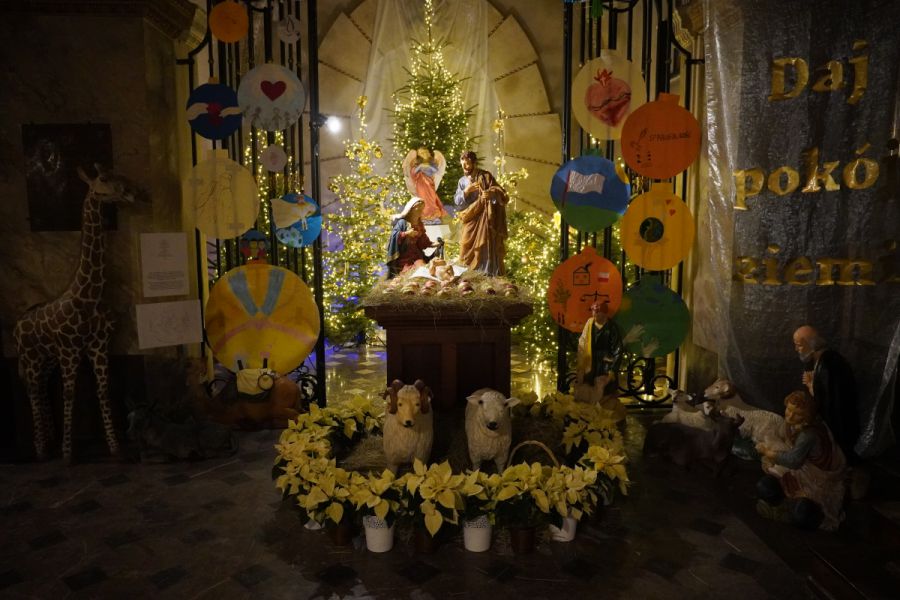 Anioły do tegorocznej szopki wykonały dzieci ze Szkoły Podstawowej nr 13 w Kielcach, Szkoły Społecznej w Kielcach oraz te, które przychodzą do katedry w niedziele na Mszę św. o godz. 13.00.