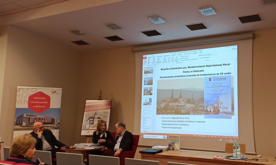 W dniu 14 grudnia w Bibliotece Uniwersyteckiej Uniwersytetu Jana Kochanowskiego w Kielcach miała miejsce prezentacja książki autorstwa Pani dr inż. arch. Małgorzaty Doroz - Turek pt: "Bazylika Katedralna pw. Wniebowzięcia N.M.P.: przeobrażenia architektury kościoła od średniowiecza do XX wieku". Publikacja ta zawiera wiele ciekawych informacji o przeobrażeniach architektonicznych Bazyliki Katedralnej w Kielcach.