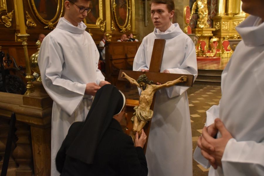 Tłumy wiernych wzięły udział w liturgii wielkopiątkowej w kieleckiej katedrze. Nabożeństwo rozpoczęło się od procesji w ciszy, po której biskup Andrzej Kaleta upadł na twarz w geście prostracji. Podczas Liturgii Słowa wierni wysłuchali opisu Męki Pańskiej według św. Jana, w wykonaniu Chóru Bazyliki Katedralnej.