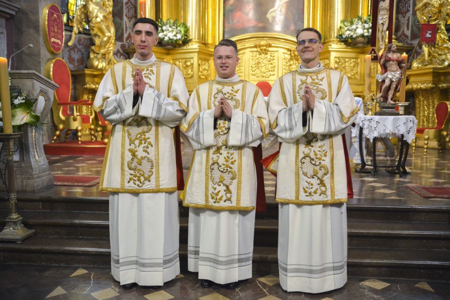 Diakonami zostali alumni V roku: Paweł Cieplewicz z parafii św. Bartłomieja w Szczekocinach, Mikołaj Marzęcki z parafii św. Wojciecha w Kościelcu oraz Mateusz Smolarczyk z parafii Podwyższenia Krzyża Świętego w Łopusznie.